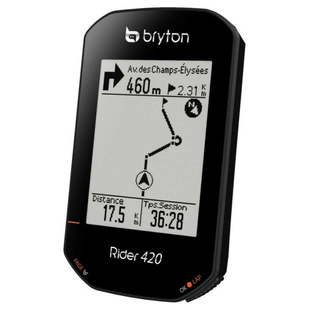 Le compteur GPS Bryton 420 a été conçu dans un souci de simplicité et de commodité. Il est doté d’un écran optique de 2,3 pouces de haute qualité, offrant un vision claire et nette sous tous les angles pour une expérience à vélo des plus agréables. Grâce à sa fonction de suivi de pistes et les instructions virage par virage, l’exploration de zones inconnues ne pose aucun problème. L’intégration du système GNSS (Systèmes mondiaux de navigation par satellite) permet au Rider 420 d’effectuer une localisation satellite plus rapide pour un positionnement et des enregistrements plus précis. Il offre également une compatibilité maximale en fonctionnant parfaitement avec les capteurs ANT Plus et BLE. En résumé, le Rider 420 est un ordinateur de vélo GPS simple et précis, facile à utiliser immédiatement.