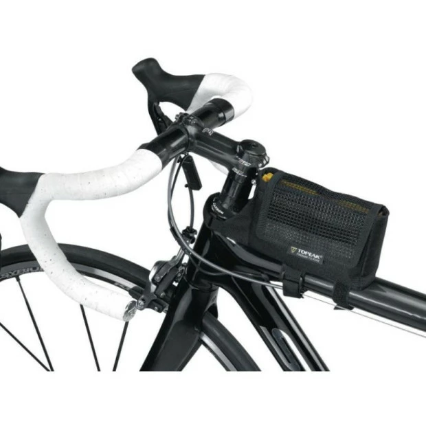 La sacoche de cadre Topeak TriBag se monte rapidement sur le tube supérieur de votre vélo grâce à ses bandes Velcro qui entourent également la potence. Elle vous permettra d’avoir un accès rapide et facile aux barres énergétiques et à vos outils en cas de petite panne. Deux poches latérales offrent une capacité supplémentaire.